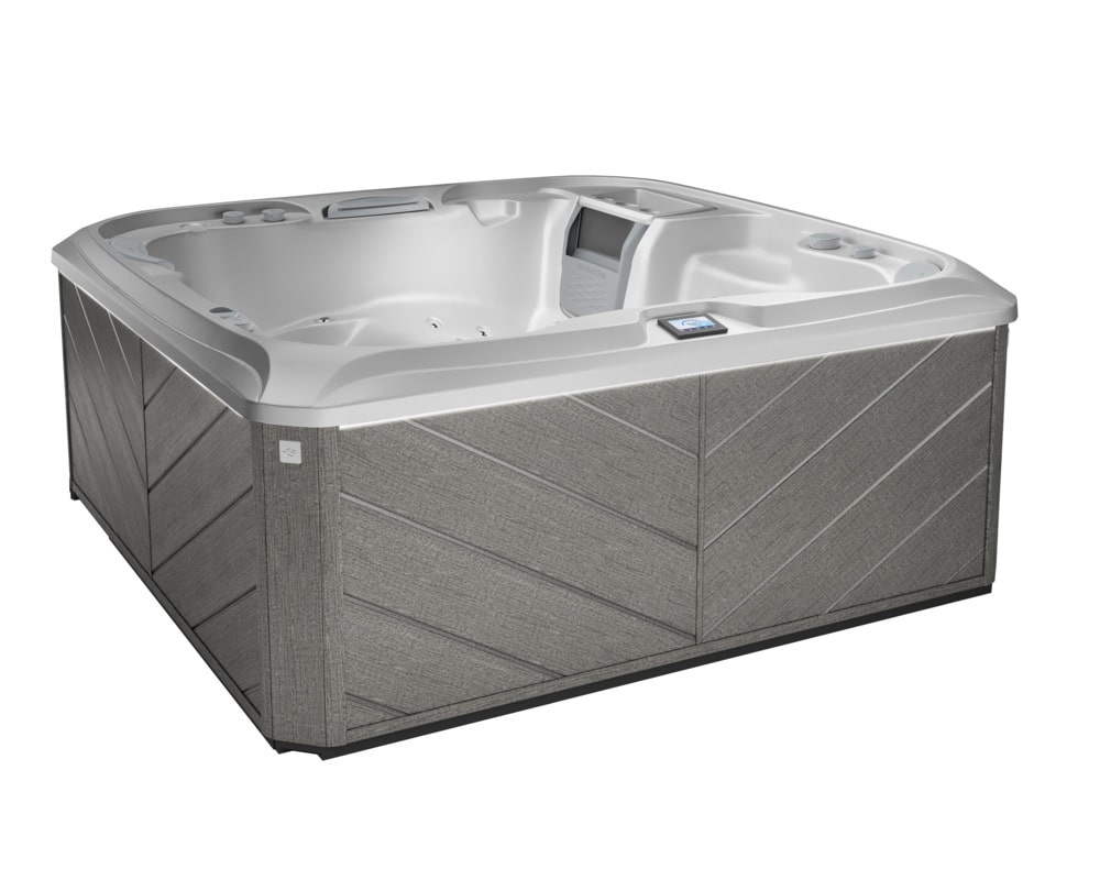 The Cameo® spa seats up to six adults, offering the perfect variety of seat heights formed to fit diverse body types. Our best-selling lounge model, this spa has the best of everything, from illuminated grab bars to air-only aromatherapy-releasing jets. Melt into the lounge seat and feel your stress disappear thanks to the most Fluidix® jet variety from your neck to your wrists to your feet. Throughout the Cameo® spa you’ll also find diverse seat options, from the customer-favorite, deep-immersion Accu-Ssage™ Seat to the exclusive, bold, therapeutic Intelli-Jet™ Seat. An asymmetrical foot dome is also tucked into the corner of the deep foot well so you can move about your spa comfortably. The optional, stunning SunSide ™ cabinetry features corner lighting that is as functional as it is architectural, drawing the eye to the modern design while providing added safety. It’s also paired with an illuminated status light to provide quick indication at a glance